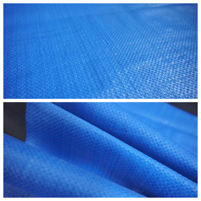 Синие тканевые мешки изготовлены из новых гранул полипропилена (PP) с добавлением зеленого пигмента. Они проходят через ряд процессов, включая термоплавление, круговое плетение, резку и шитье.
